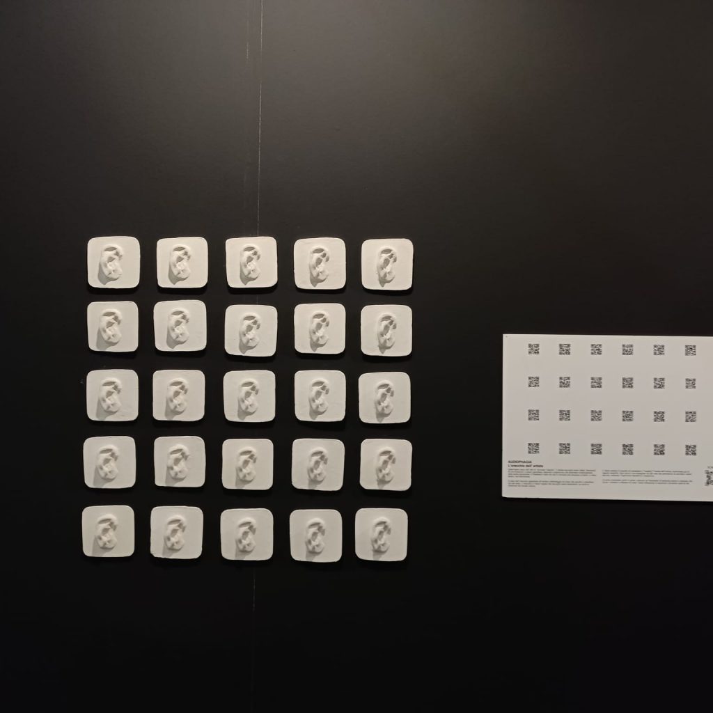 L’opera esplora il concetto di consumare e “vendere” l’anima dell’artista, trasformata qui in oggetto tangibile. Ogni pezzo è accompagnato da QR code che permettono di ascoltare i suoni raccolti, rendendo l’esperienza interattiva e immersiva.